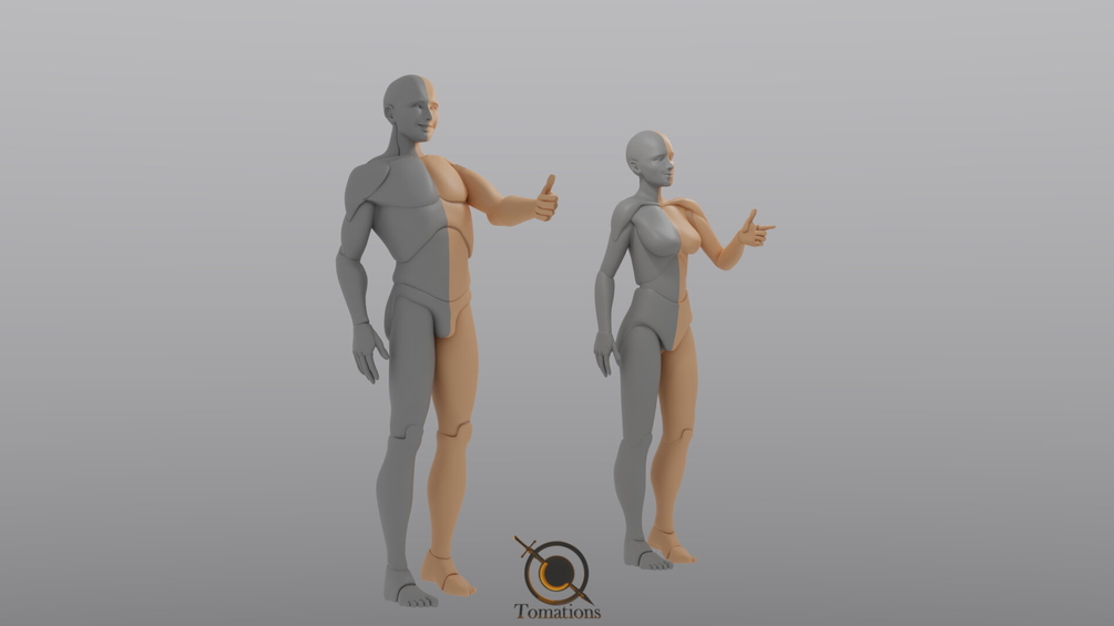 These are the upgraded versions of my previous rigged dolls. These ones have all the fancy parts like actual faces with teeth! It’s been a good few years since I upgraded my dolls as I’ve been working on other projects, but since I created these two I’ve been using them in everything. I am very happy with how useful they’ve become to my workflow and I’m thrilled to share them with everyone and hope they serve you all as they have served me!