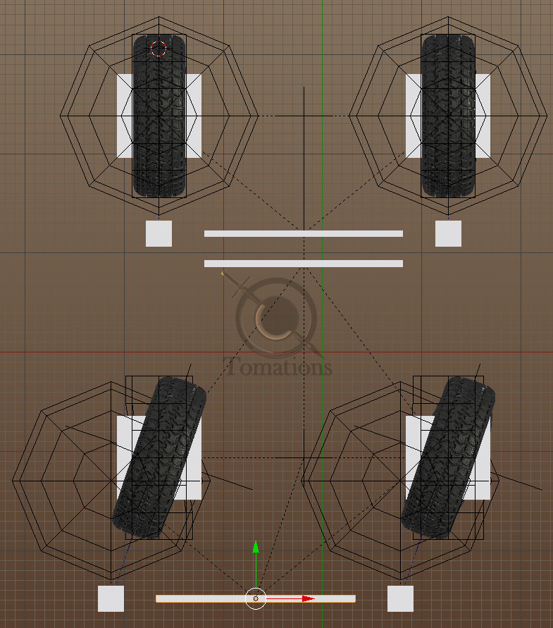 While perhaps not as visually impressive as some of my other work these simple wheels actually have an in-depth rig to allow for deformation of the tire, rotation of the wheels both to roll and to adjust direction. The front and back wheels can be detached from each other to add or subtract wheels, and more controls. This wheel rig was built with constraints as opposed to the former wheel rig I created that was made with bones.